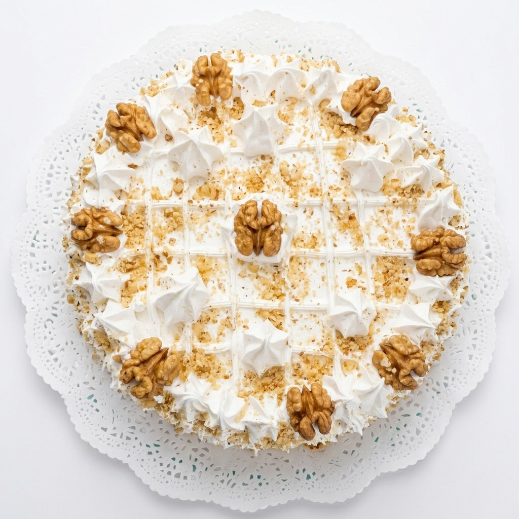 Torta de nuez decorada con merengue